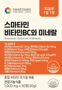 ½º¸¶Å¸¹Î ºñŸ¹ÎBC¿Í ¹Ì³×¶ö (Smartamin Vitamin B, C & Minerals) 30Á¤(30ÀϺÐ)